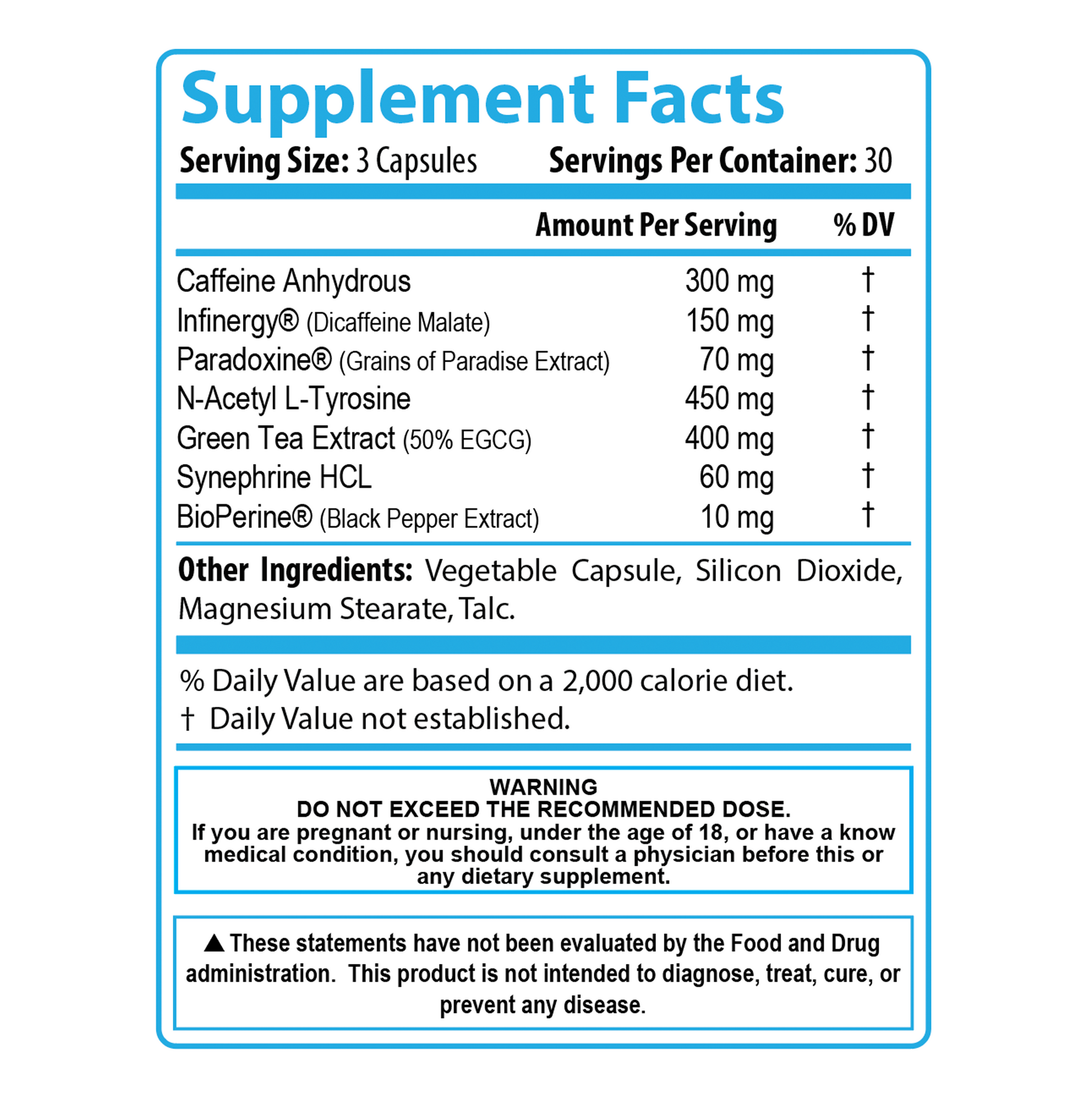Caffeine Anhydrous + Infinergy® (Dicaffeine Malate): energía sostenida sin crash.